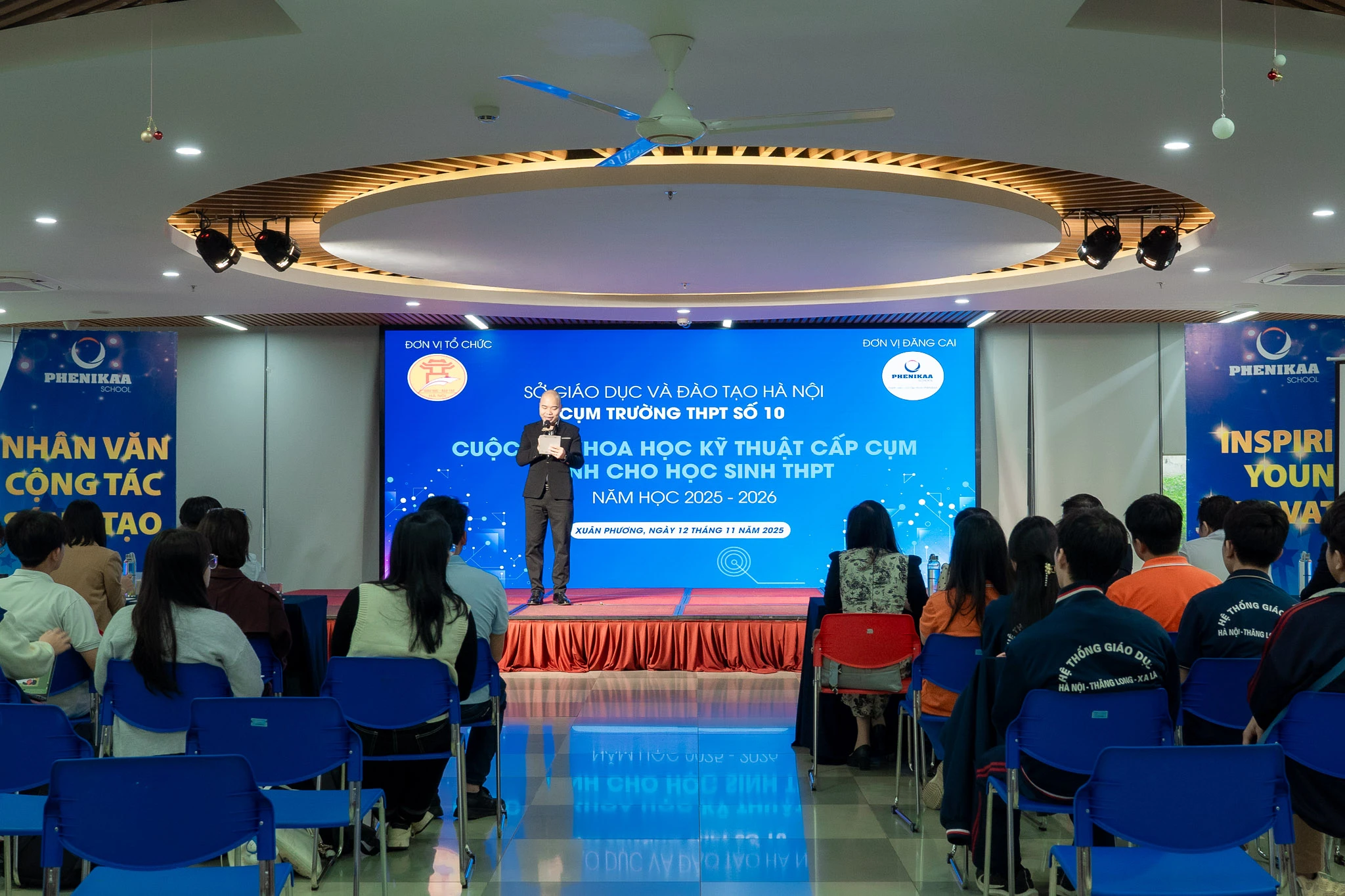 Sáng ngày 12/11, Trường THCS & THPT Phenikaa vinh dự là đơn vị đăng cai Cuộc thi Nghiên cứu Khoa học Kỹ thuật cấp Cụm năm học 2025-2026. Nhà trường đã hân hoan chào đón các thầy cô và học sinh từ nhiều trường THPT trong khu vực về tham dự, tạo nên một ngày hội trí tuệ sôi nổi, giàu cảm hứng sáng tạo.