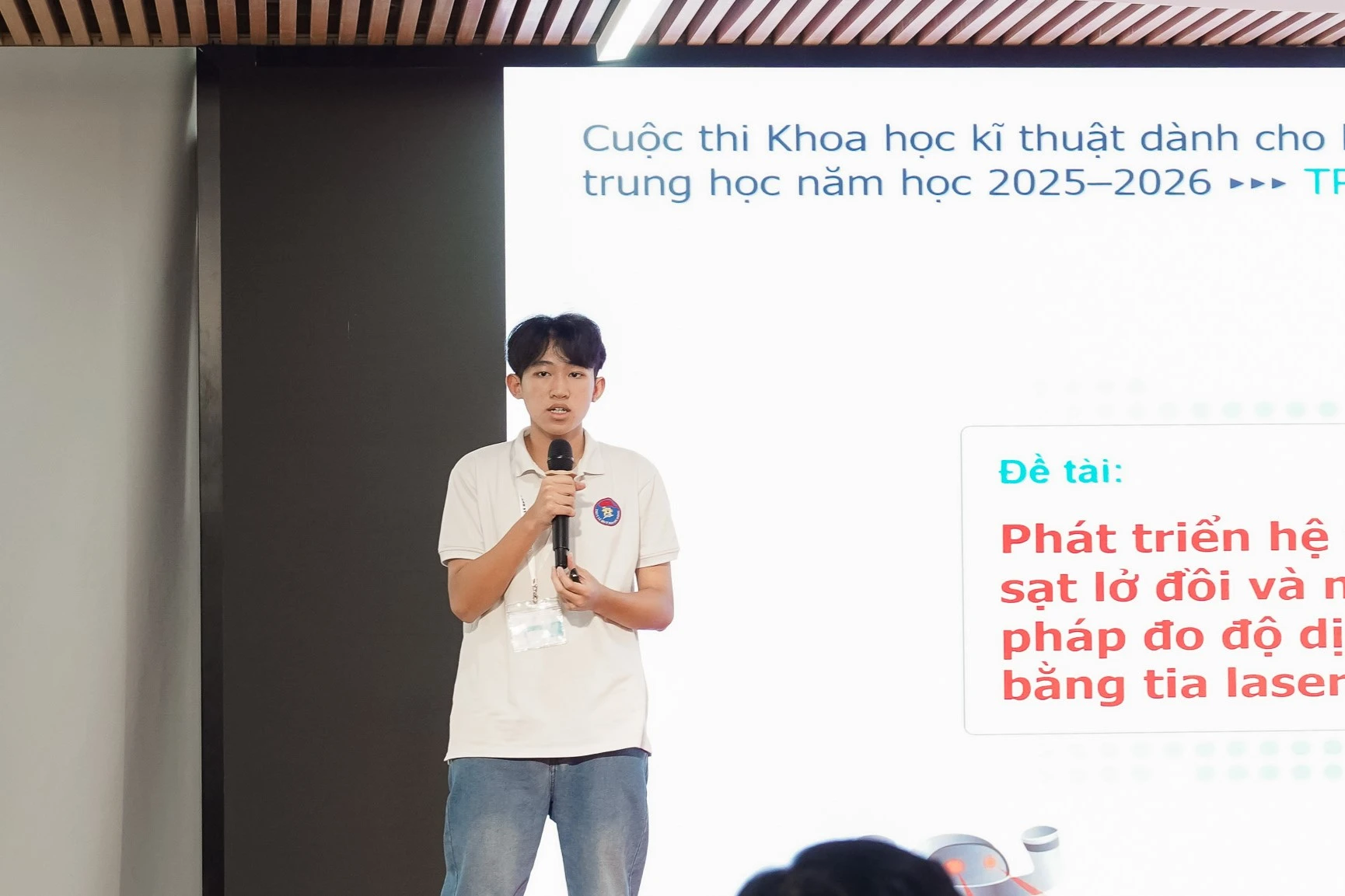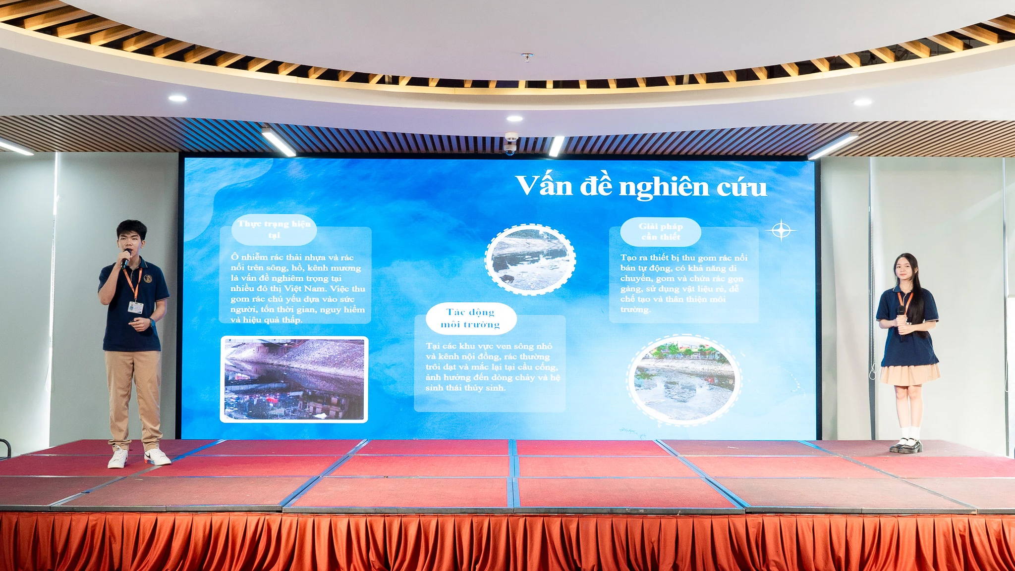 Năm nay, cuộc thi quy tụ 10 đội dự thi đến từ 6 trường THPT, mỗi đội mang đến một dự án khoa học có tính sáng tạo, ứng dụng và ý nghĩa xã hội cao. Không khí hào hứng bao trùm hội trường khi các đội lần lượt thuyết trình, phản biện và thể hiện sự tự tin, khả năng nghiên cứu bài bản của mình.